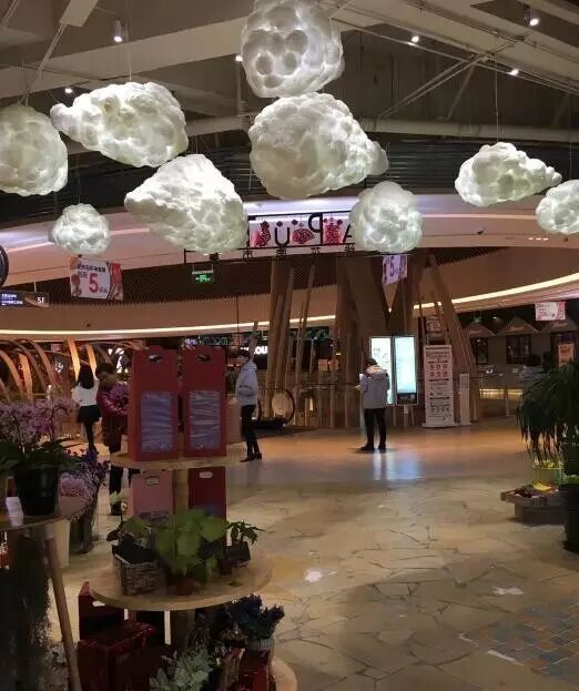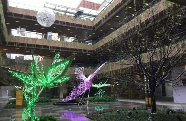 当然不仅仅是如此,商场内随处可见的弯月及铁艺。到了晚上,自然轮到那11件美轮美奂的光影艺术及神秘的文萤火花园。